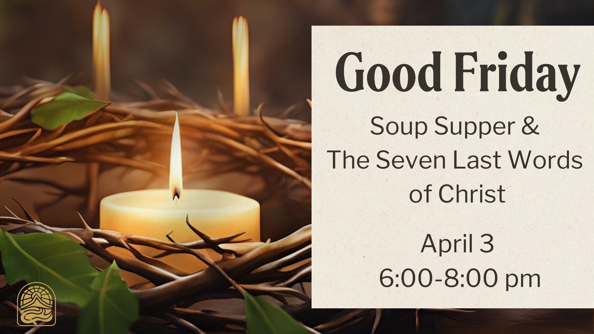 Good Friday Soup Supper & the Seven Last Words of Christ, April 3 from 6:00 -8:00 pm Good Friday is the day we remember Jesus’ death on the cross. It is a difficult day, not just because it is sad, but also because it is complex. In our four gospel books, there are seven different things that Jesus says during his crucifixion. On Good Friday, April 3rd, we are invited to reflect on each of these seven messages and meanings of the cross. Instead of a traditional worship service, worshipers will walk around the sanctuary, reading these Seven Last Words of Christ and engaging in brief practices to help us reflect on what Jesus did for us. Join us between 6 and 8 pm on Friday, April 3rd. A simple soup supper will also be offered in the Green Room at the same time. You are invited to come at a time convenient to you.